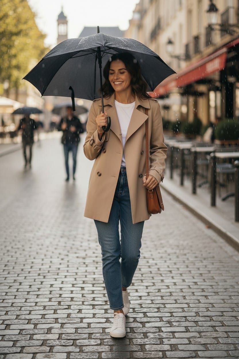 Trench con diseño. Composición tela gamuzada anti lluvia. TENDENCIA ´26: cortos y con detalles de ecocuero